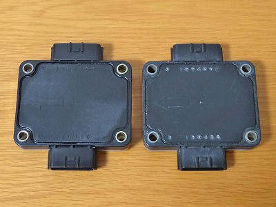左側が今回取り付けるパワトラ(ほぼ新品)、右側が取り外したパワトラ(中古を約15年使用品)です。品番は共に、22020-05U00になります。